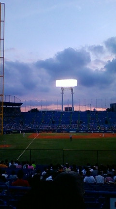 外野席、ガイエルのほぼ真後ろで弁当食ってます(笑)